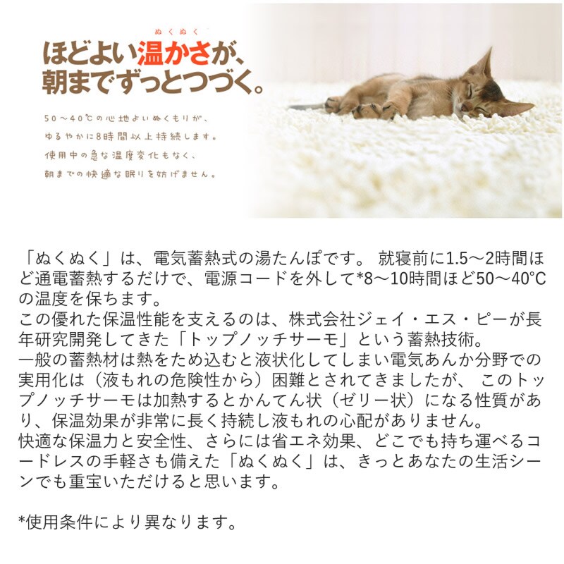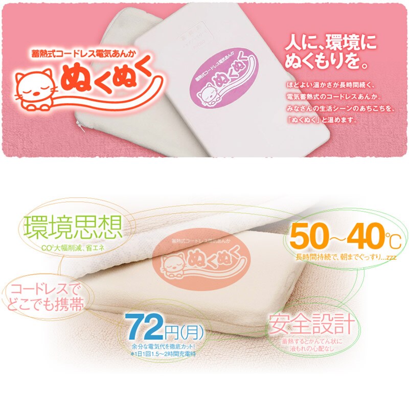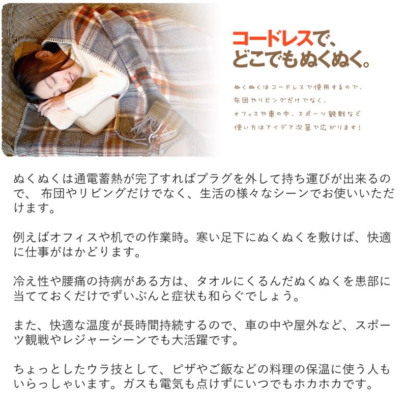 蓄熱式コードレス電気あんか「ぬくぬく」 湯たんぽ 蓄熱式 保温 暖かい 安眠 低コスト コードレス 節電 車 スポーツ観戦 レジャー キャンプ エコ