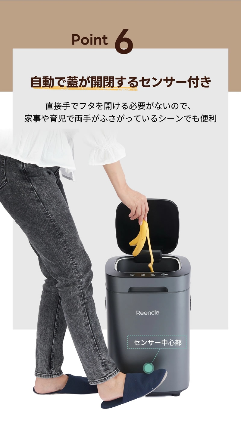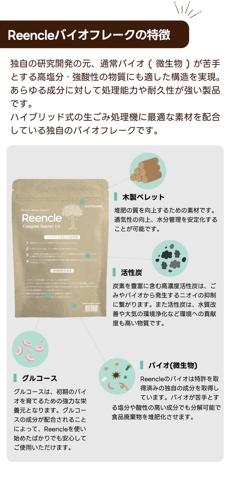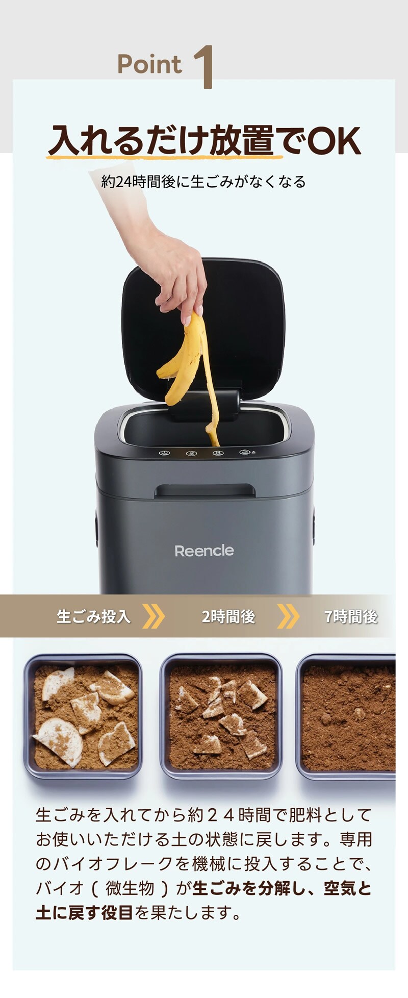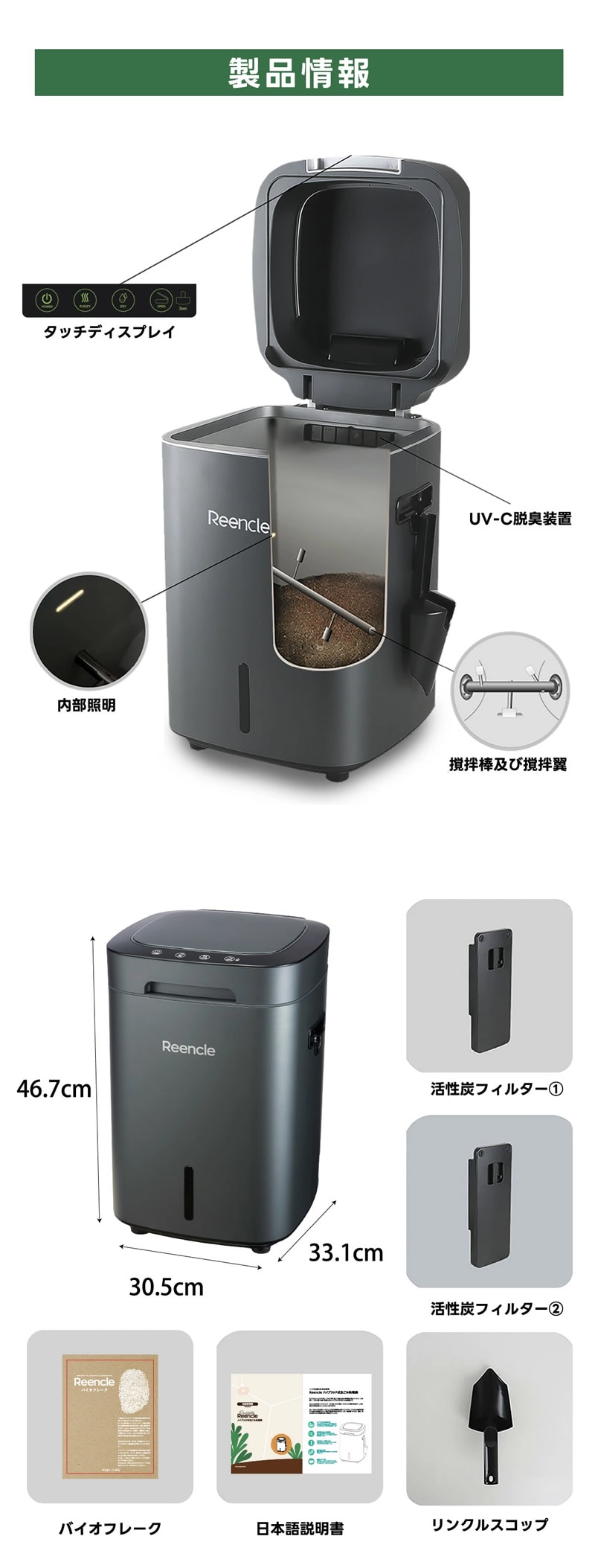 Reencle Prime ハイブリッド式 家庭用 生ごみ処理機 生ごみ処理機 大容量 強力脱臭 堆肥 生ごみ ペットのフン 卵の殻 魚の小骨
