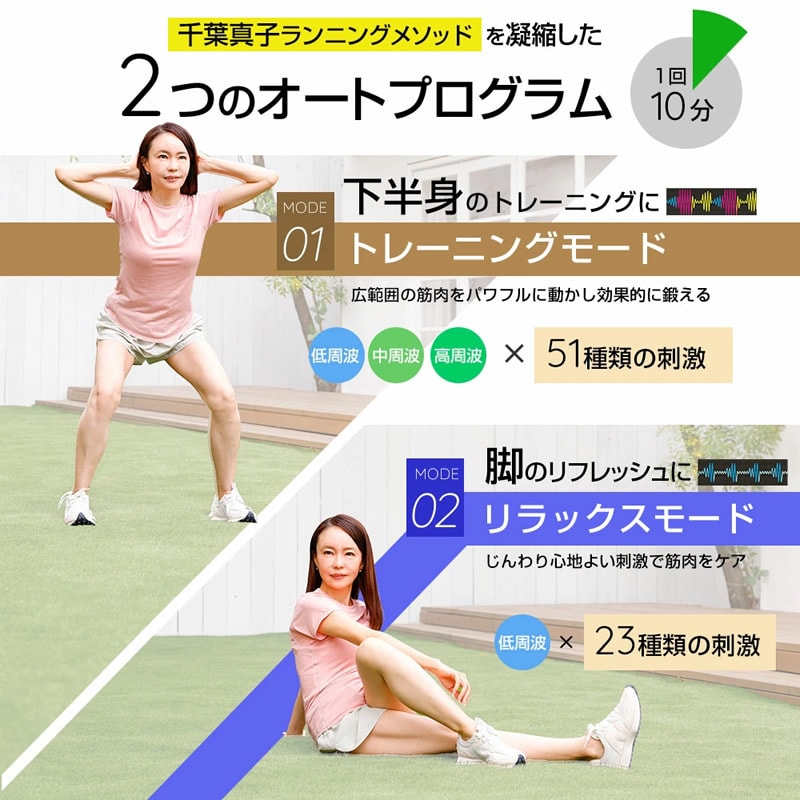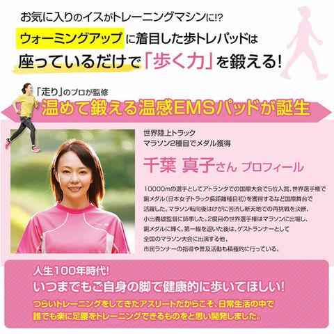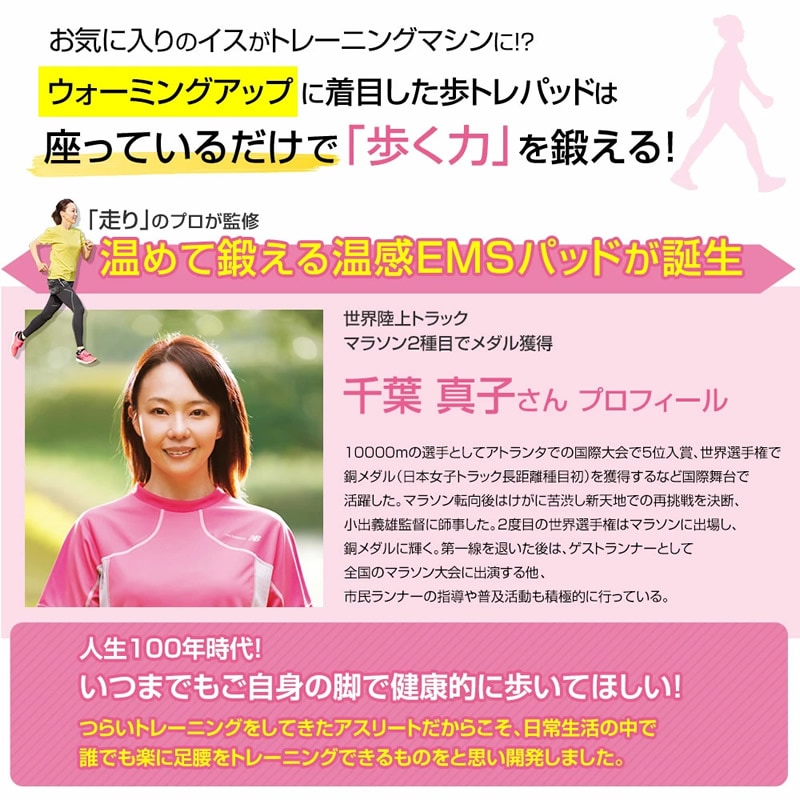 「走りのプロ」陸上長距離界のレジェンド千葉真子さんが監修した充電式コードレス温感[脚用EMSパッド]。