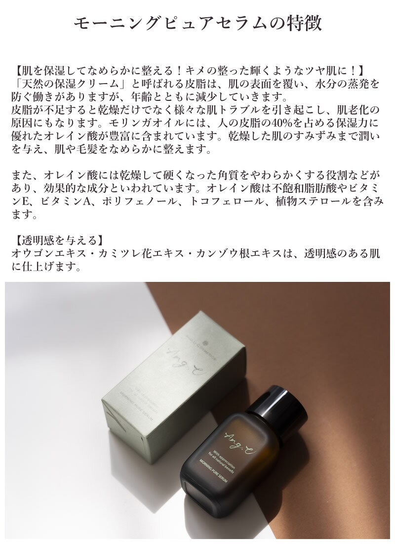 Ang.U アンジーユー モーニングピュアセラム スキンケア モリンガオイル エイジングケア 美容液 美容オイル CICA ツボクサエキス カミツレ