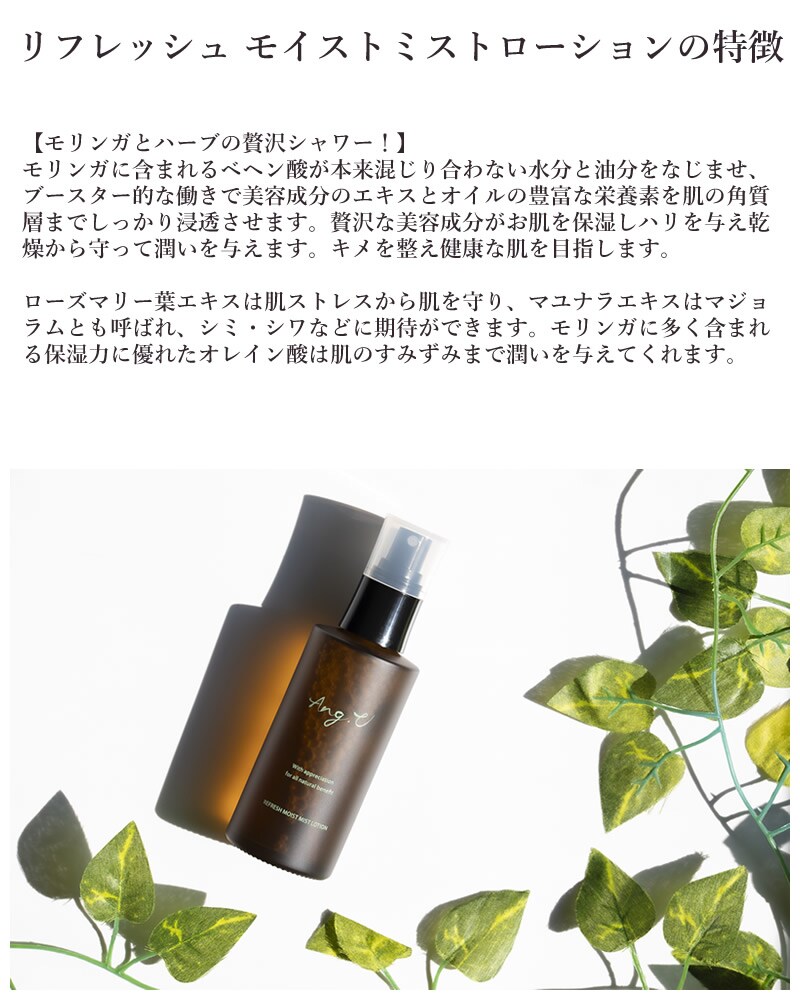 Ang.U アンジーユー リフレッシュモイストミストローション スキンケア モリンガオイル エイジングケア 化粧水 ローション ブースター ローズマリー