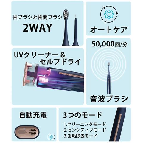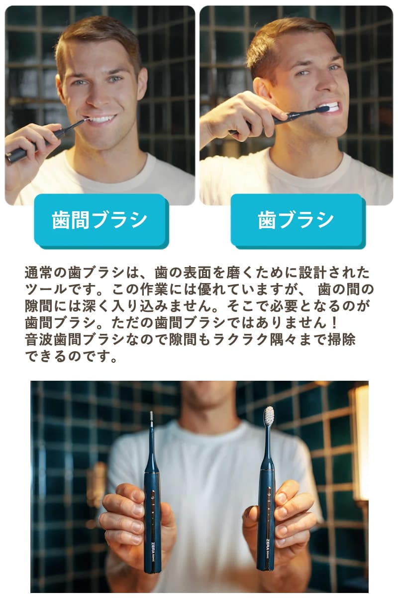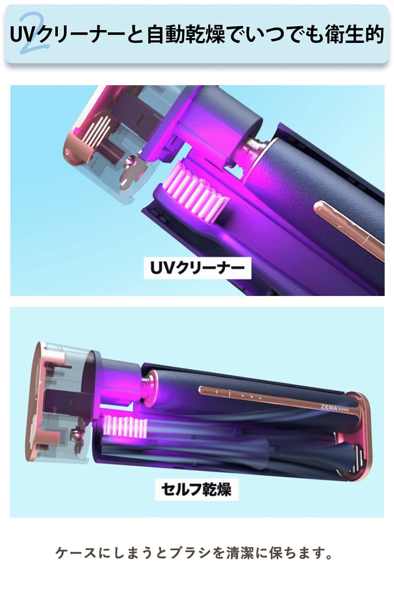 ゼラソニック ZERA SONIC 電動歯ブラシ 歯間ブラシ 歯垢除去 音波ブラシ 音波振動 UVクリーナー マイクロファン 衛生的 音波歯ブラシセット 虫歯