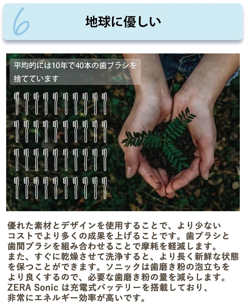 歯磨きや歯間ブラシなどの繊細な作業には振動が多すぎる通常の電動歯ブラシとは異なり、ZERASonicは強力でありながら、動作中にあまり動きません。