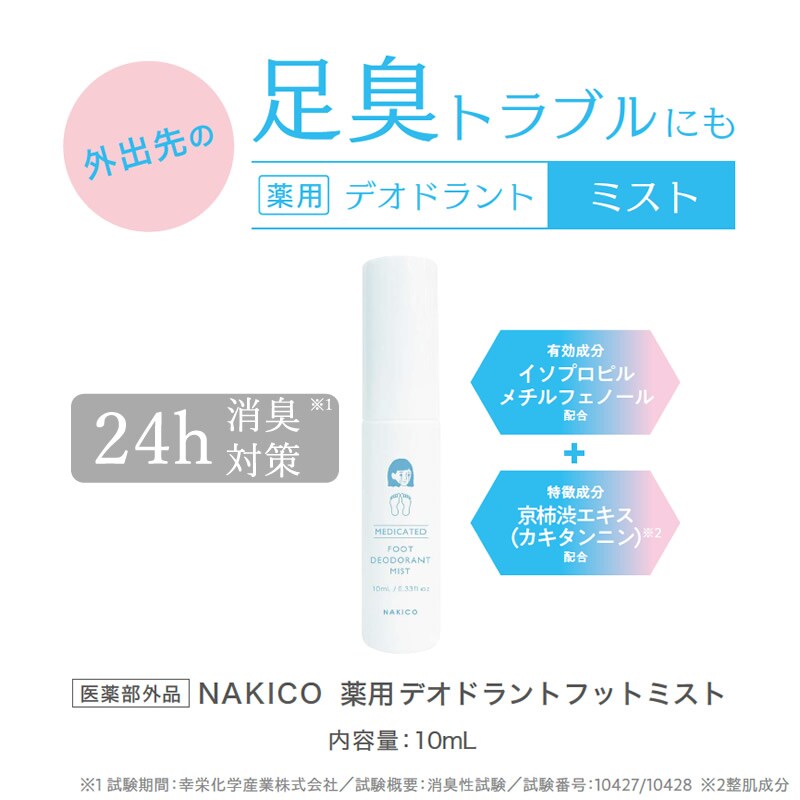 NAKICO ナキコ 薬用 デオドラントフットミスト 10ml 医薬部外品 足の臭い 足臭 対策 フットケア 足用 デオドラント 臭い消し 子供 革靴