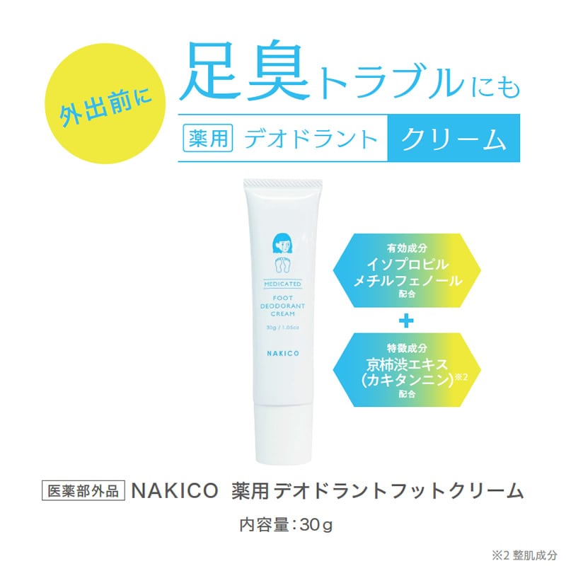NAKICO ナキコ 薬用 デオドラントフットクリーム 30g 医薬部外品 足の臭い 足臭 対策 フットケア 足用 デオドラント 臭い消し 子供 革靴