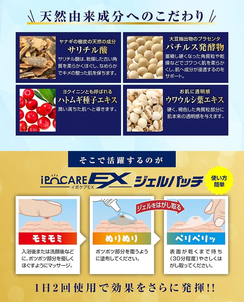 イポケアEX ジェルパッチ 2個セット 角質ケア パック スキンケア 角質粒 ジェル サリチル酸 バチルス発酵物 ハトムギ種子 日本製