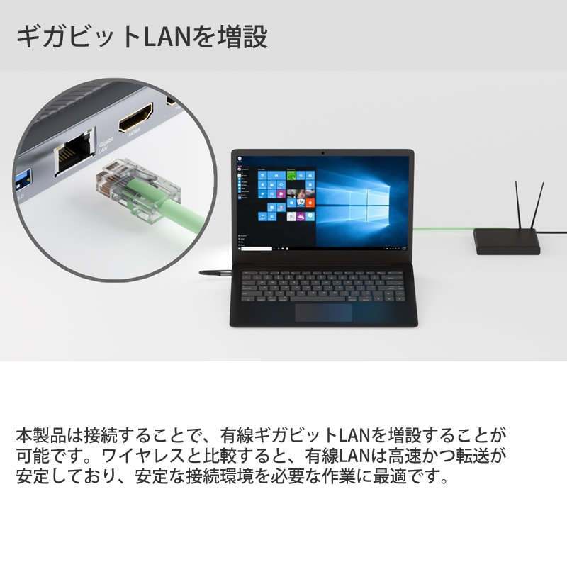薄型ノートパソコンに接続することで、同時に接続できるデバイスを増やし、より様々な使い方を便利にします。