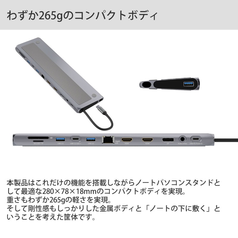 ドッキングステーション リバーシブル トゥエルブ バージョンDP パソコン TypeC 2画面同時出力 USBポート LAN 3.5mmオーディオ出力 PowerDelivery