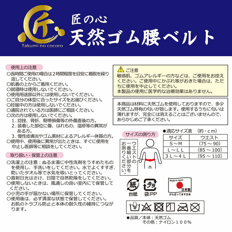 匠の心 天然ゴムの腰ベルト 日本製 産後ケア 骨盤サポート 骨盤ベルト 男女兼用 スポーツ 介護 看護 ドライバー 立ち仕事 座り仕事 天然ゴム