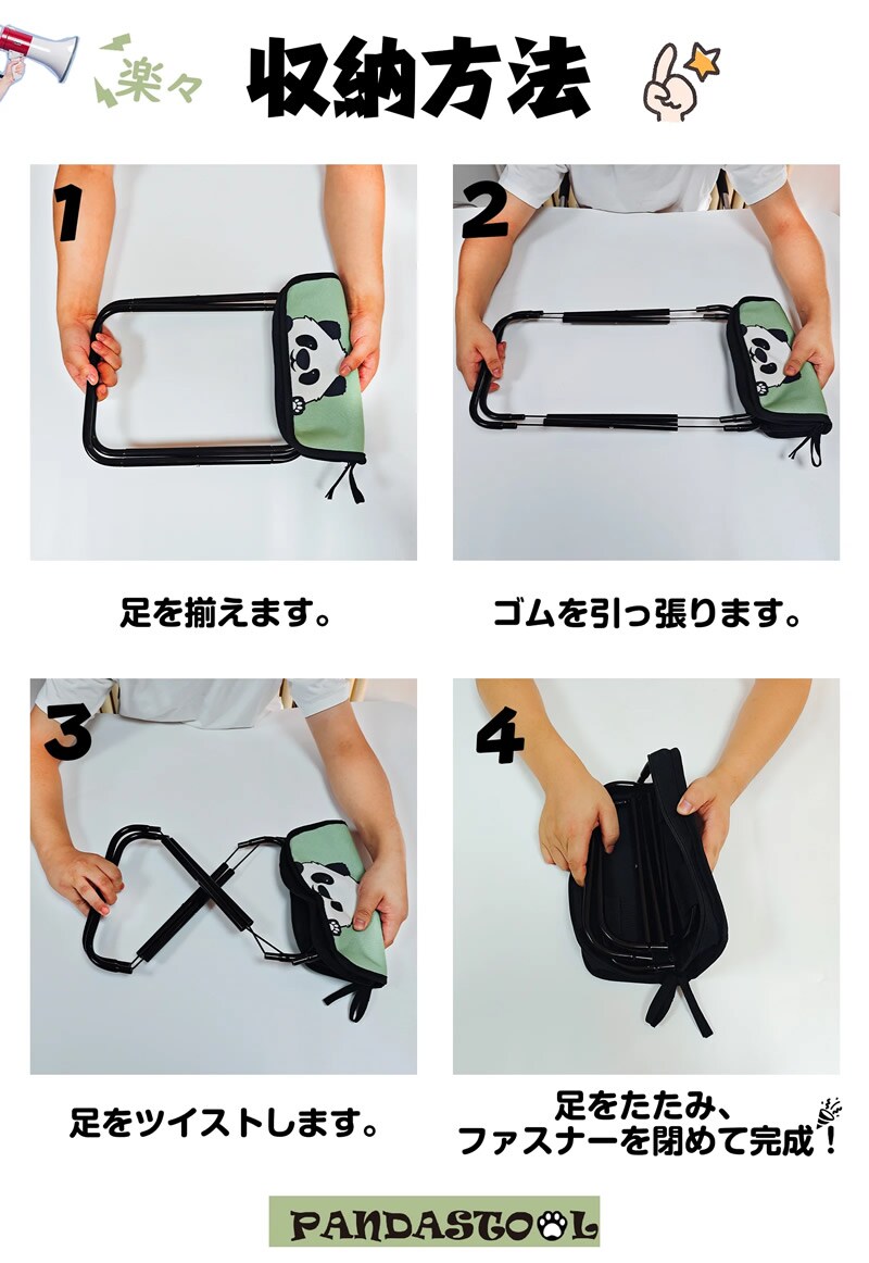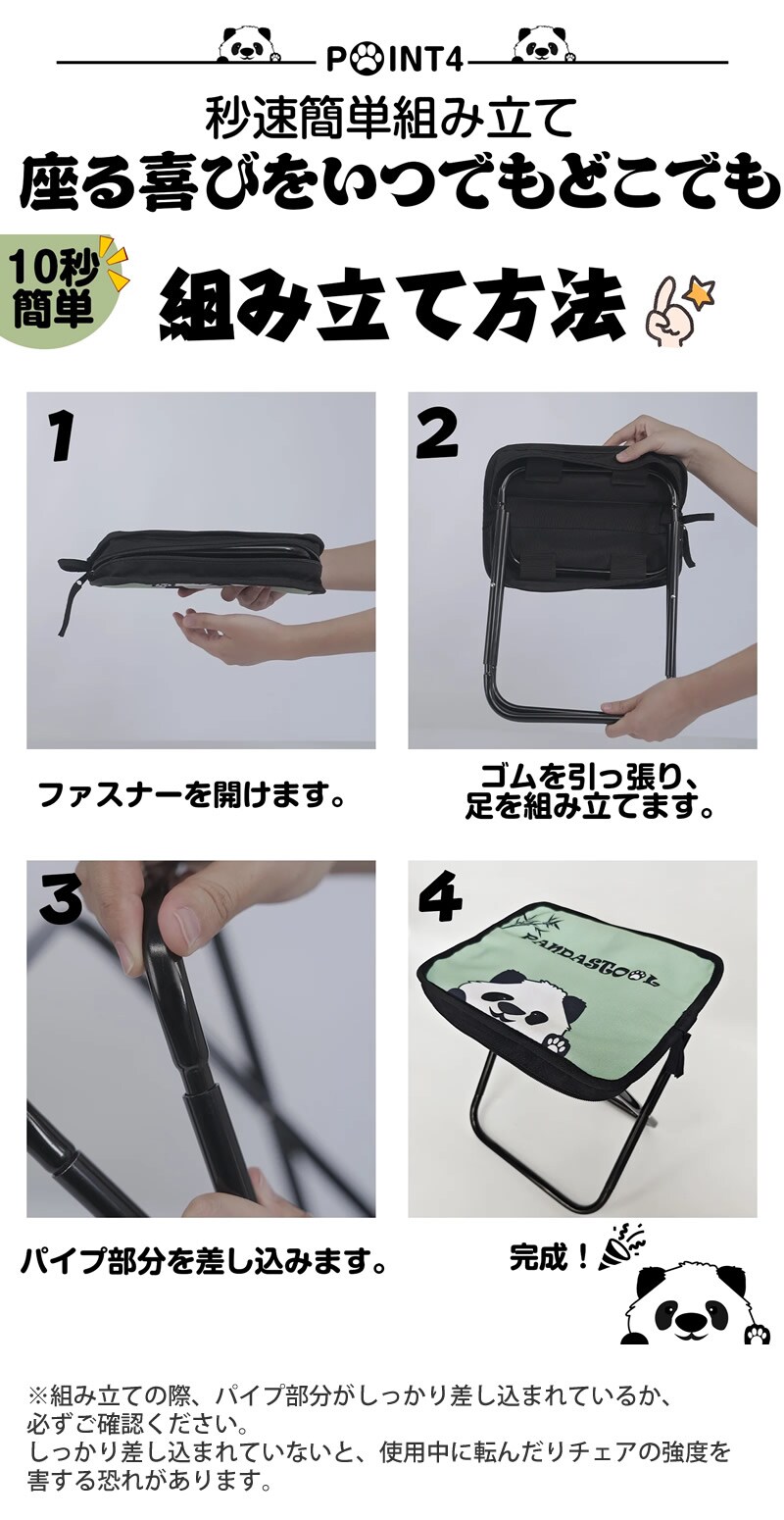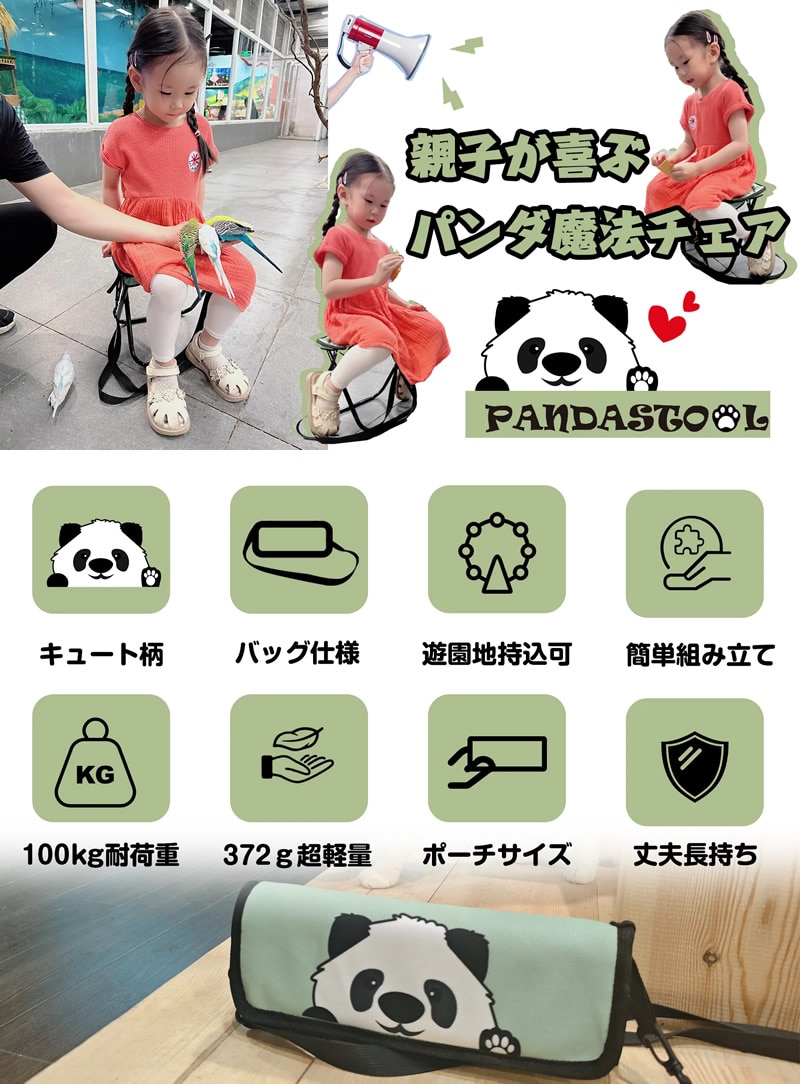 パンダ折り畳みチェア 椅子 チェア 折りたたみ椅子 軽量 運動会 行列 観戦 花火 釣り アウトドア キャンプ お出かけ 大人 子供 バッグ パンダ柄