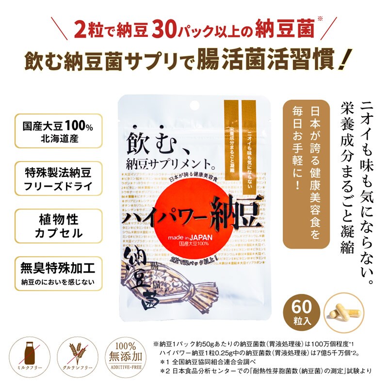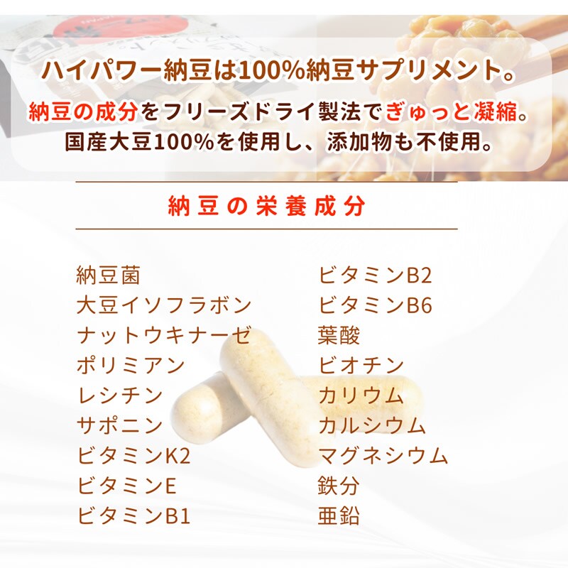 納豆粉末(大豆を含む、国内製造)、ヒドロキシプロピルメチルセルロース