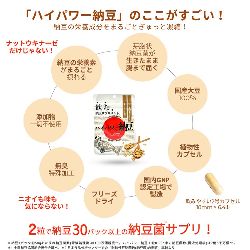 ハイパワー納豆 ナットウキナーゼ 納豆粉末 納豆菌 腸活 菌活 納豆キナーゼ 粉 納豆 なっとう サプリメント 大豆イソフラボン ポリアミン