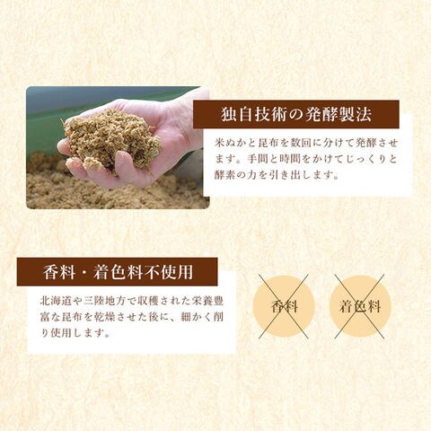 ●原料に米ぬかと昆布を使用しています。アレルギーをお持ちの方はご注意ください。