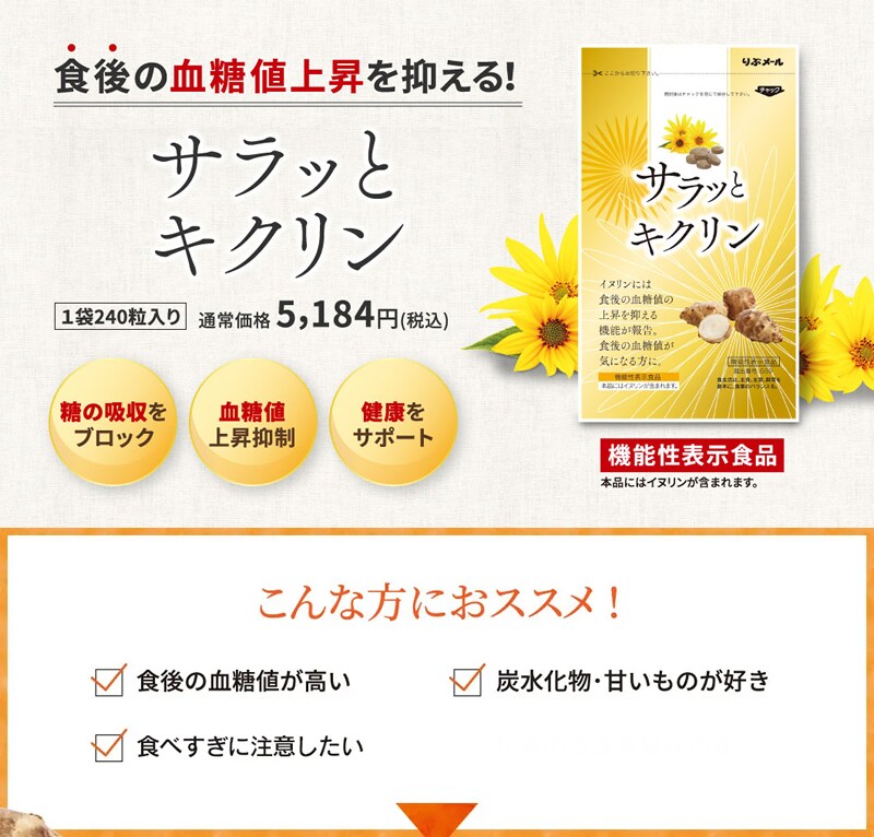 サラッとキクリン 6個セット 機能性表示食品 イヌリン 菊芋 サラシア 血糖値 亜鉛 マグネシウム サプリメント 健康食品 炭水化物 食べ過ぎのレビュー