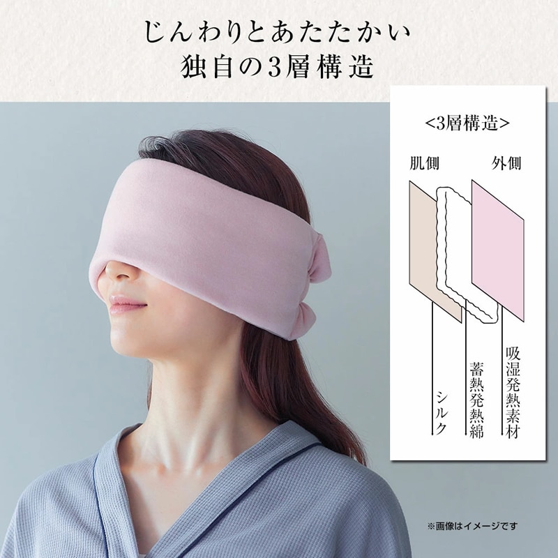 肌側シルクで優しくふんわりとしたつけ心地のおやすみアイマスク。