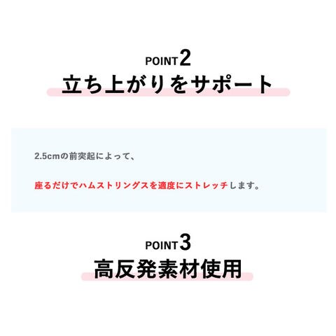 スッと立ち上がれて快適!座っているだけで前側の張り出し(突起部分)が太もも裏をストレッチ。
