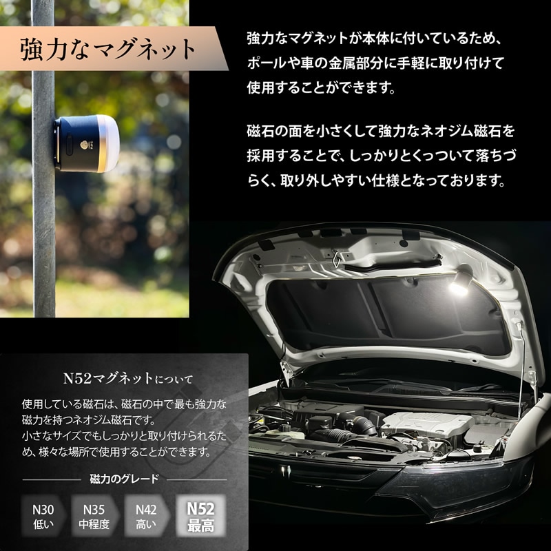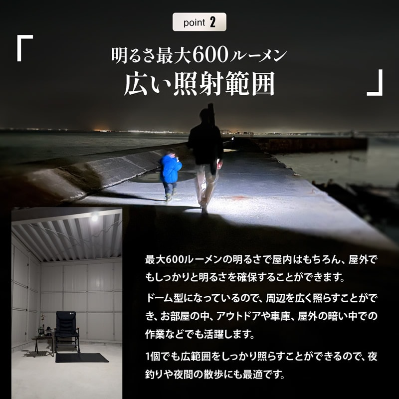 このLEDランタンは、最大600ルーメンの明るさと無段階調光機能を備えています。