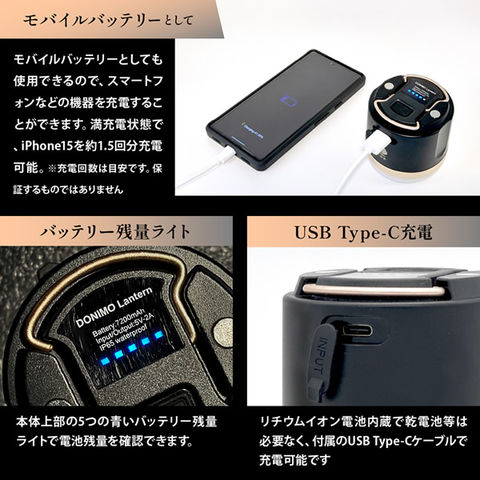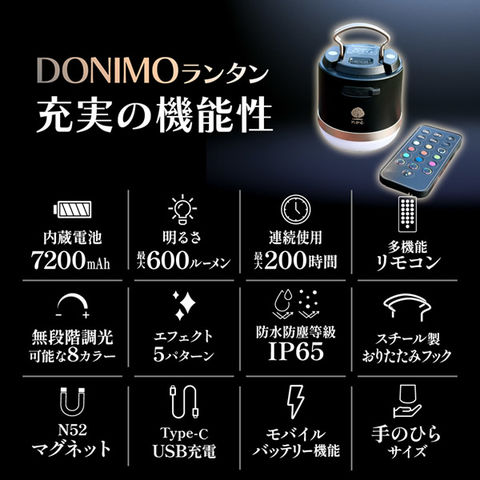 DONIMOランタン LED ランタン リモコン操作 携帯電話 充電 モバイルバッテリー機能 防災グッズ 非常用 緊急時 災害時 多機能 Type-C
