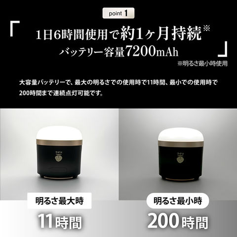 大容量7200mAhのリチウムイオンバッテリーを内蔵し、最大200時間の連続使用が可能です。