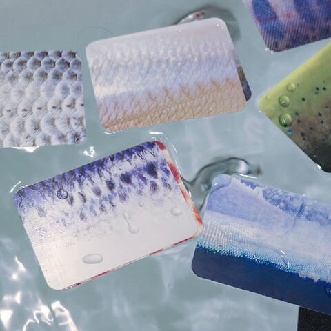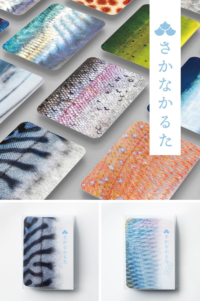 日常では見ることのない魚の模様や鮮やかな色彩、魚が光を反射する時のキラキラ感やウロコの凹凸を特殊な印刷技術で再現しています。