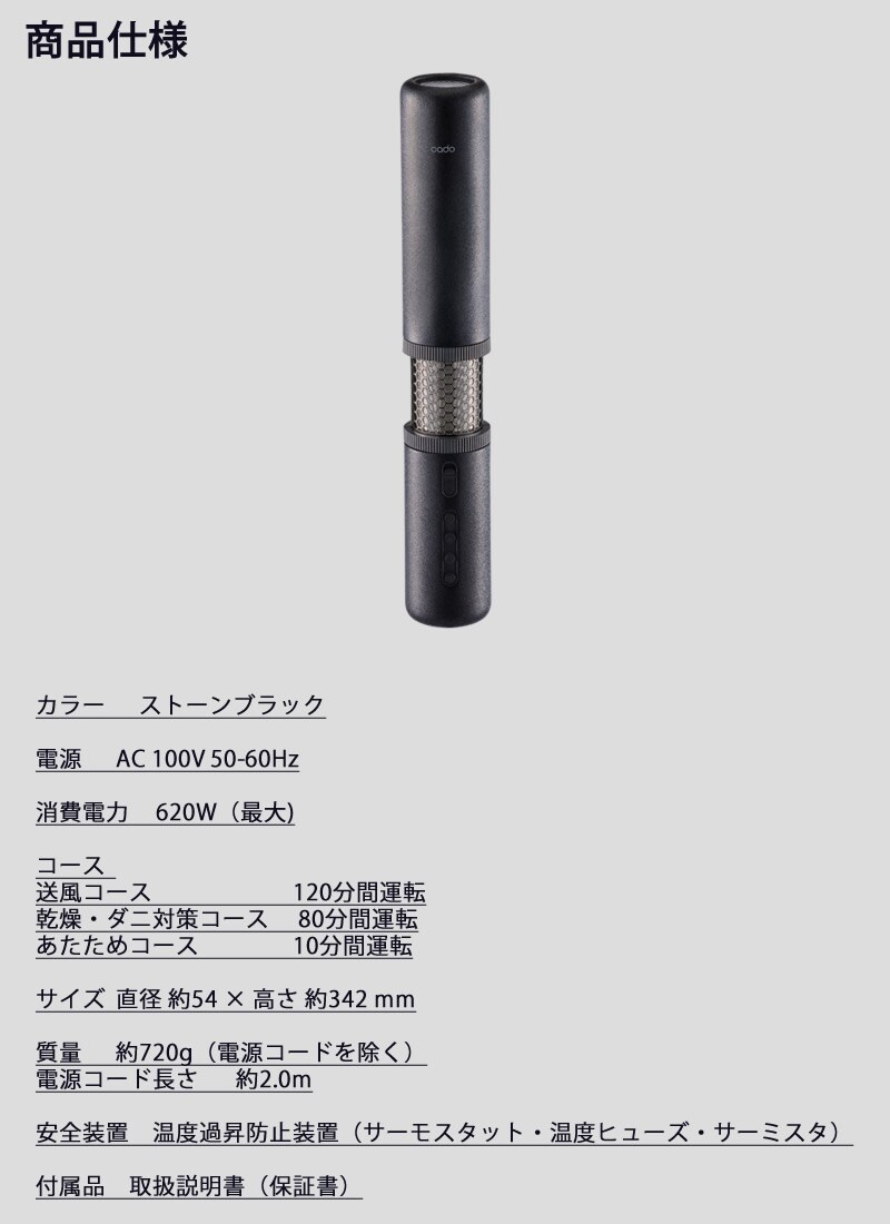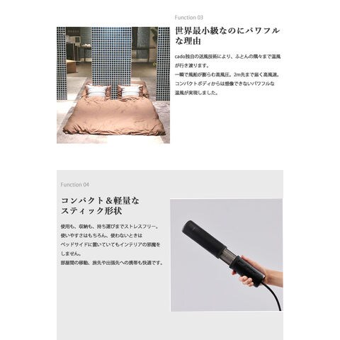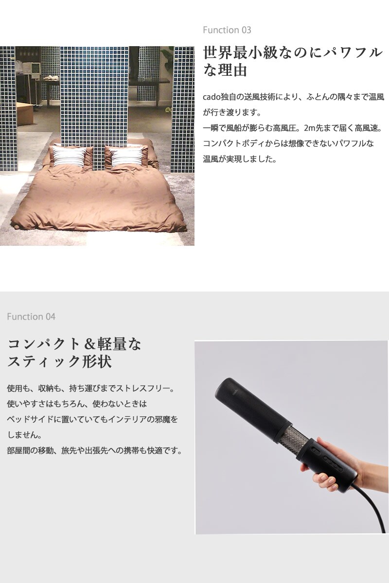 cado カドー 布団乾燥機 ふとん乾燥機 FOEHN PRO フェーン プロ コンパクト パワフル ダニ対策 ニオイ アロマ オゾン アタッチメント 靴乾燥 小型 トコジラミ 消臭 軽量 人気 家電 省エネ スティック形 送風コース 乾燥・ダニ対策コース あたためコース