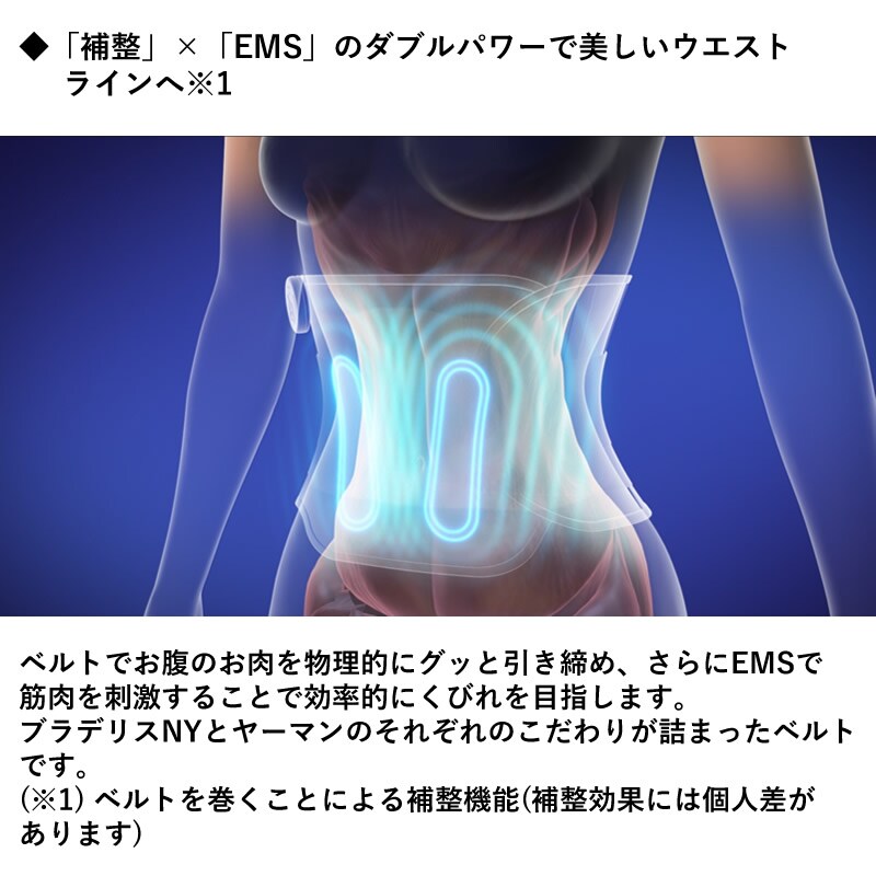 EMS 補正ベルト 骨盤 ウエスト 引き締め くびれ 産後 美姿勢 ぽっこりお腹 着圧 ながら運動 コードレス ハンズフリー 家事 ブラデリスNY YA-MAN くびれキュット モア くびれ キュッと EMSベルト