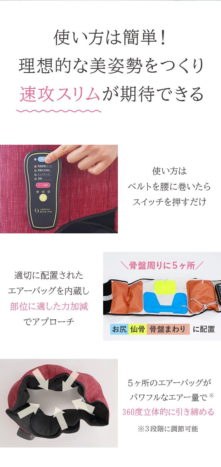 芦屋美整体 骨盤エアーリセットベルト 骨盤補整 骨盤ベルト 骨盤ケア 美脚 スタイルアップ エアーバック お尻 仙骨 引き締め ながらケア