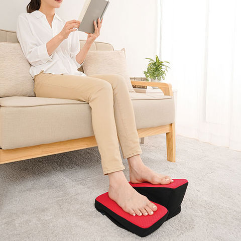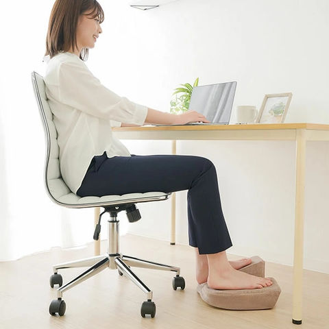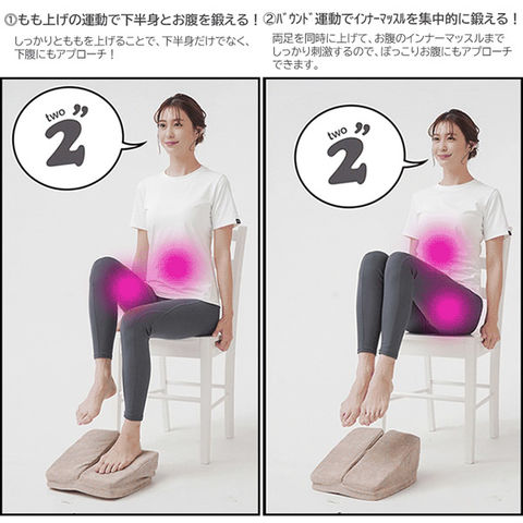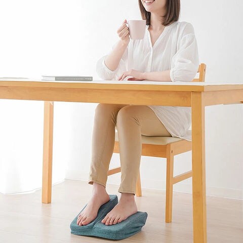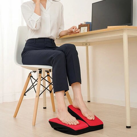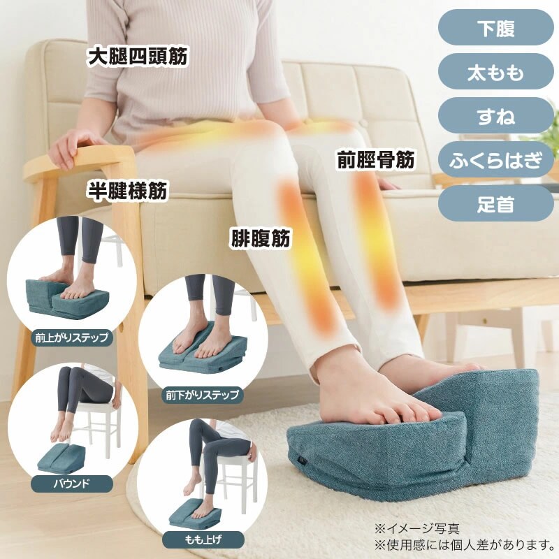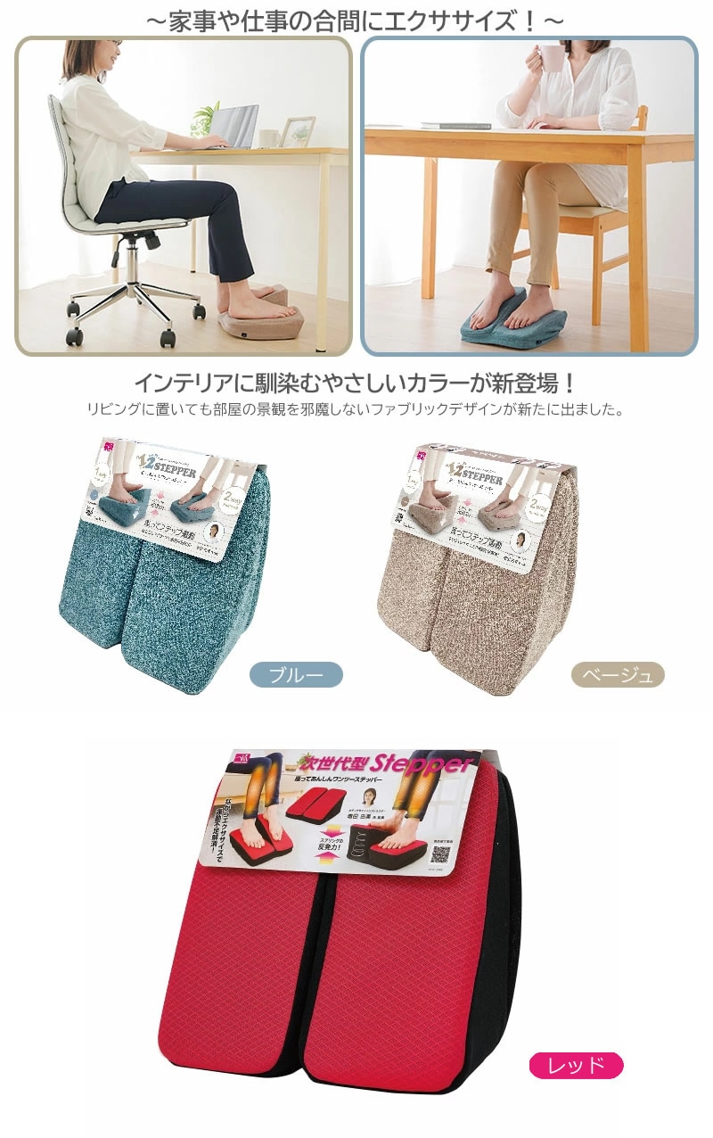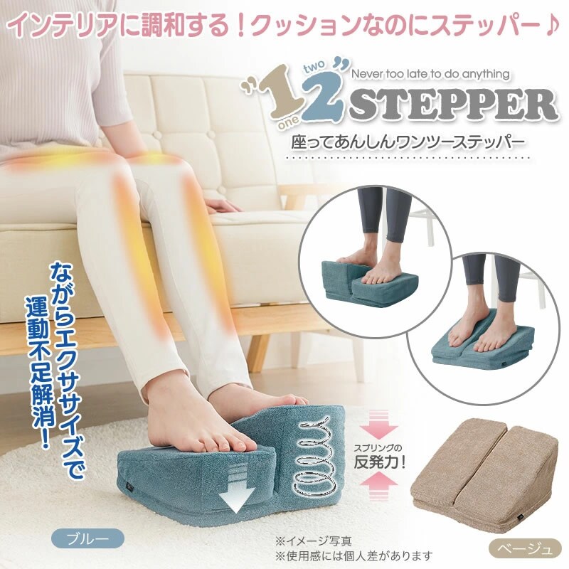 イスやソファに座って足元に置いたワンツーステッパーをテンポよく交互に踏むと脚のトレーニングに。