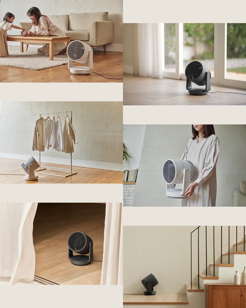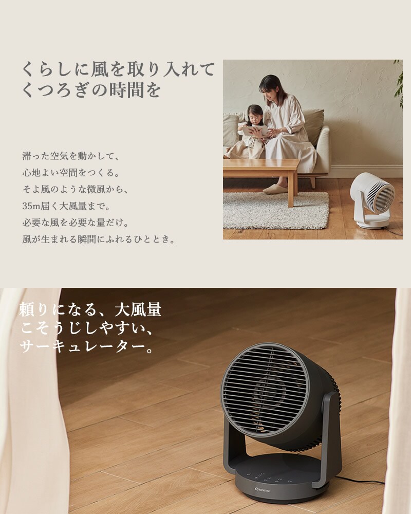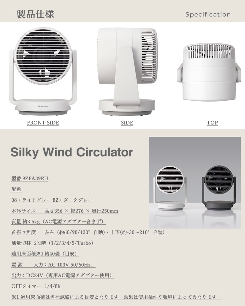 RHYTHM Silky Wind Circulator 扇風機 送風 衣類乾燥 換気 空気循環 首振り 大風量 部屋干し 省エネ コンパクト 静音 おしゃれ サーキュレーター 人気 家電 2重反転ファン こそうじ