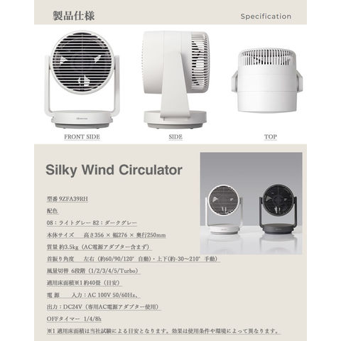 リズム サーキュレーター 扇風機 送風 衣類乾燥 換気 空気循環 首振り 大風量 部屋干し 省エネ コンパクト 静音 おしゃれ サーキュレーター 人気 家電 Silky Wind Circulator