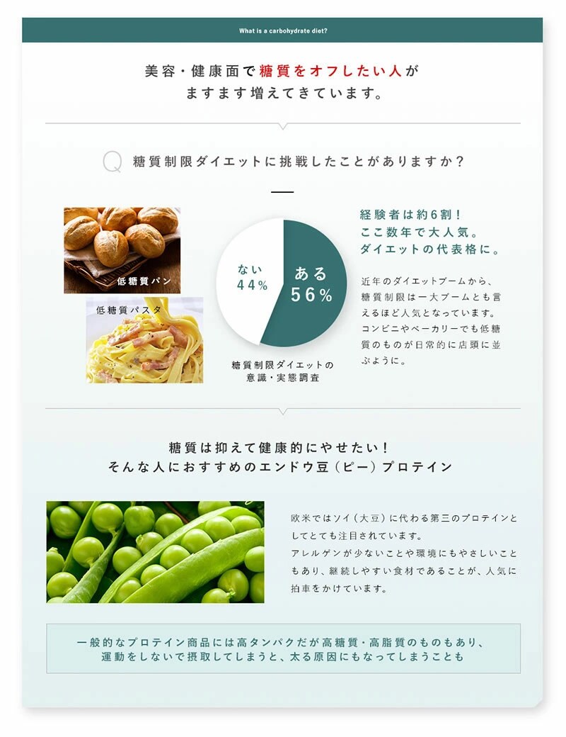 糖質0のたんぱく質、今話題のエンドウ豆由来成分『ピープロテイン』配合!