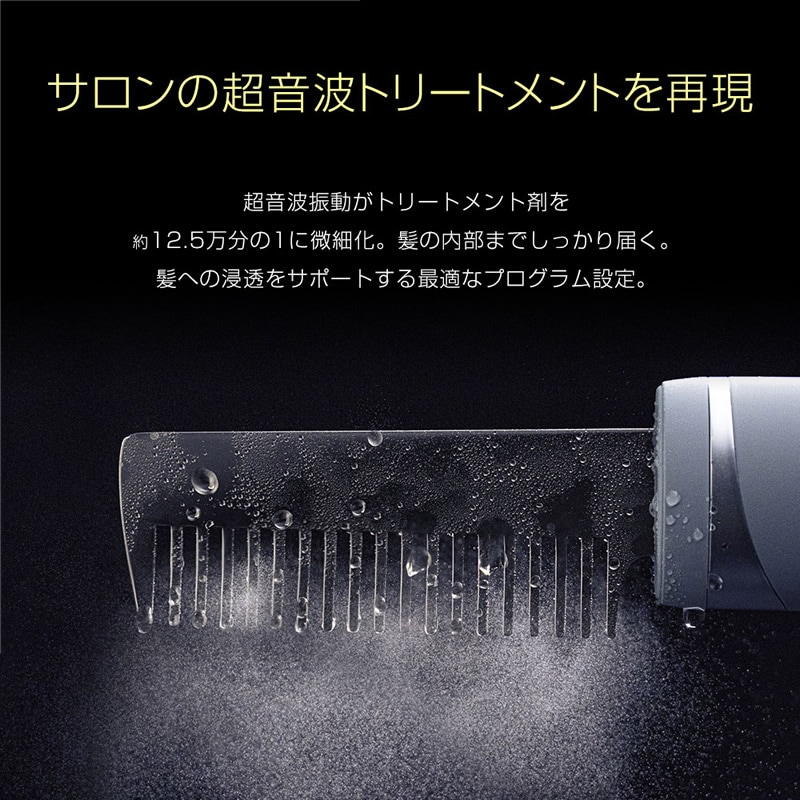独自の超音波振動がトリートメント剤を微細化し、髪の内部までしっかりと浸透をサポートします。