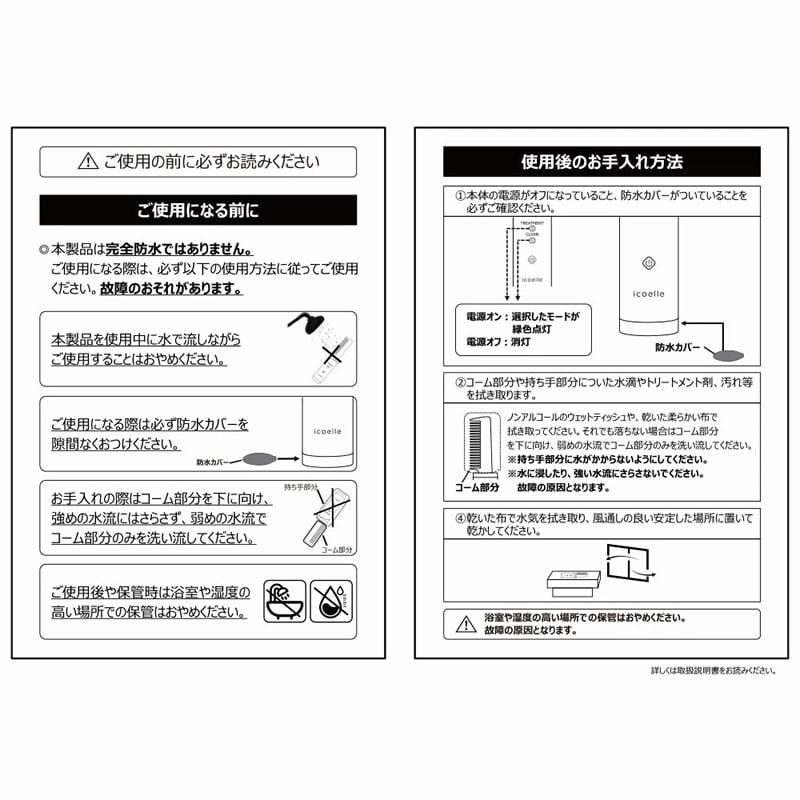 ●本製品は肌に使用する製品ですので、清潔にしてご使用ください。(お手入れ方法については取扱説明書P.13をご覧ください。)