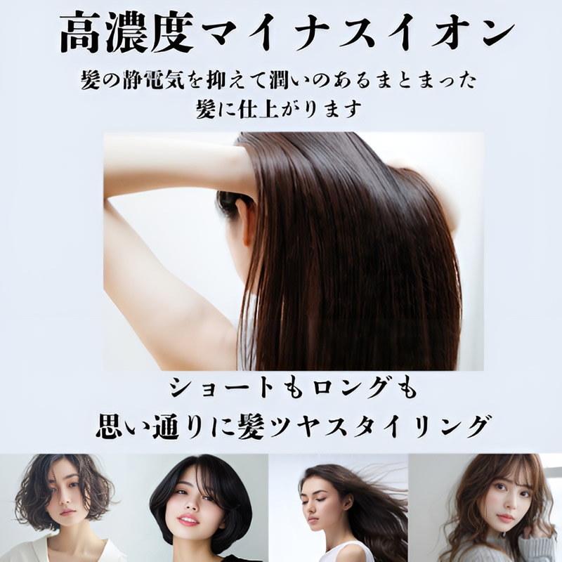 電源をオンにすると、放出口からマイナスイオンが発生※。使いやすいように重量約295gの軽量設計。