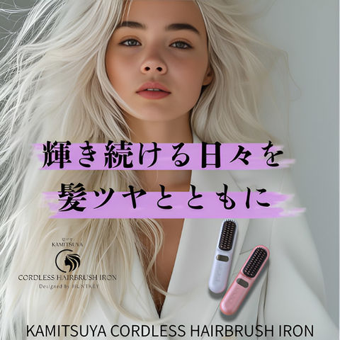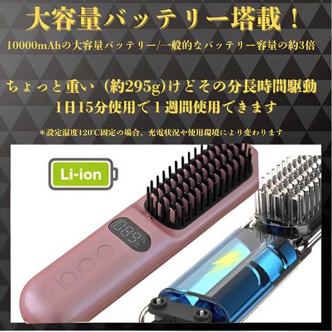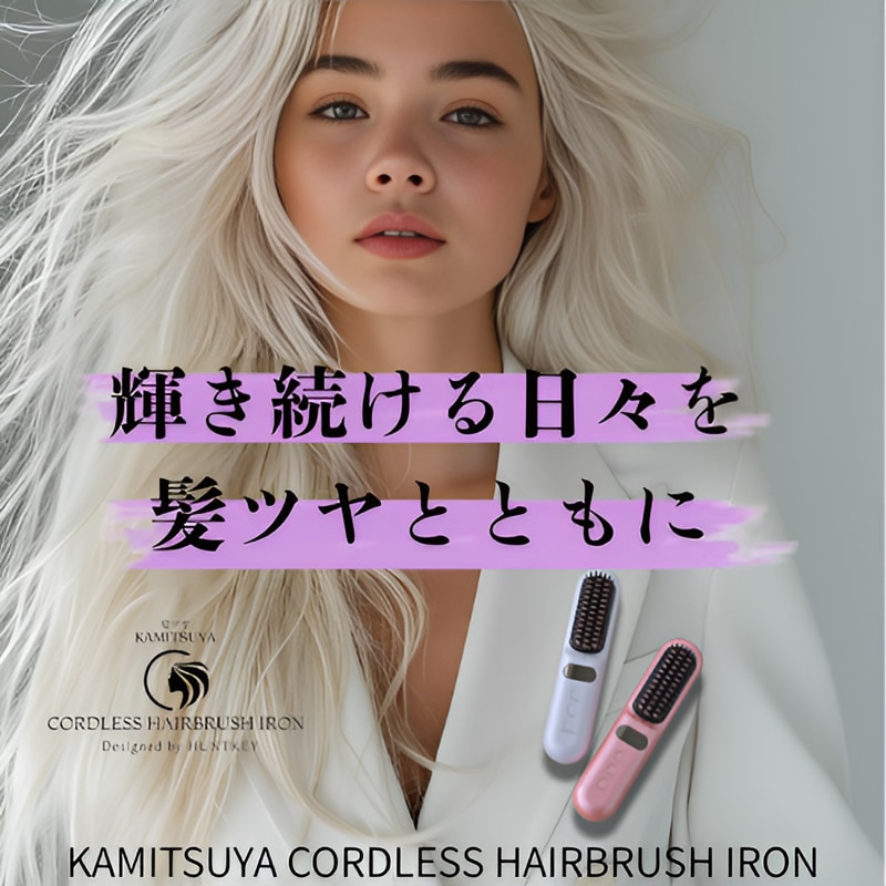 髪ツヤコードレスヘアブラシアイロン ブラシアイロン ヘアアイロン ストレート ボリュームアップ ヘアケア コードレス 時短 マイナスイオン