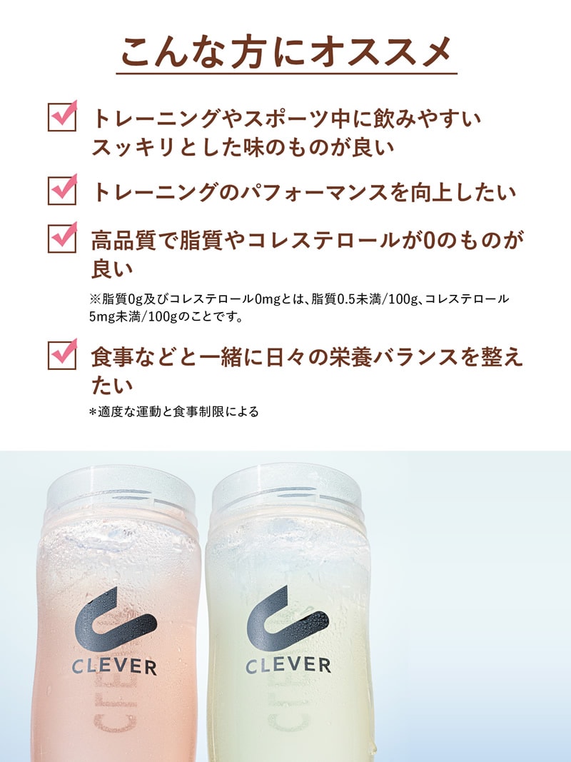 クレバー ホエイプロテイン ダイエット 女性 男性 美容 高タンパク質 低糖質 低脂質 アセロラ マスカット ピーチティー 塩レモン ぶどう 健康 筋トレ ボディメイク たんぱく質