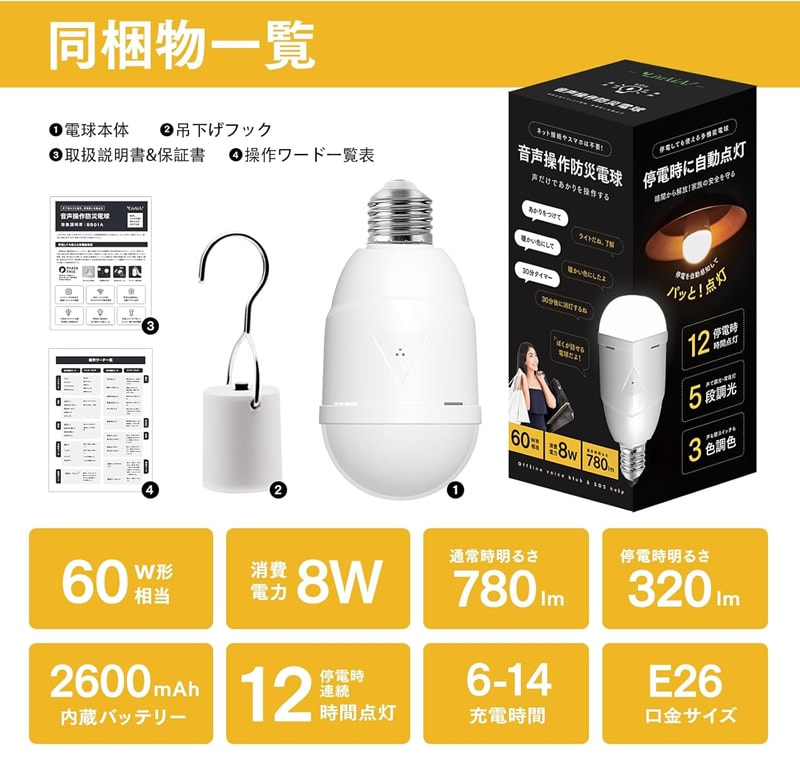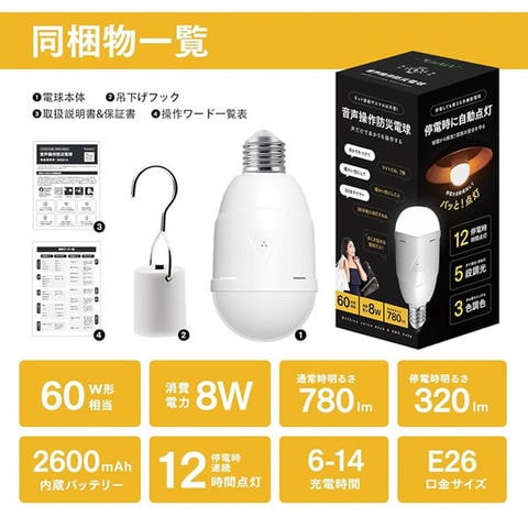 音声操作防災LED電球 BB-01A LED 電球 自動点灯 音声操作 停電 SOSコール 災害 防災 省エネ