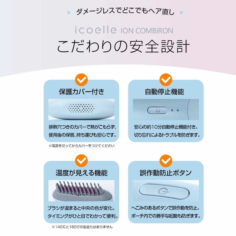 icoelle イコエル ヘアアイロン コーム型 コーム型ヘアアイロン ストレートアイロン カールアイロン 寝ぐせ 前髪 癖毛 クセ毛 ヘアケア スタイリング マイナスイオン 手軽 便利 コンパクト 通勤 通学 お出かけ 旅行 apish監修
