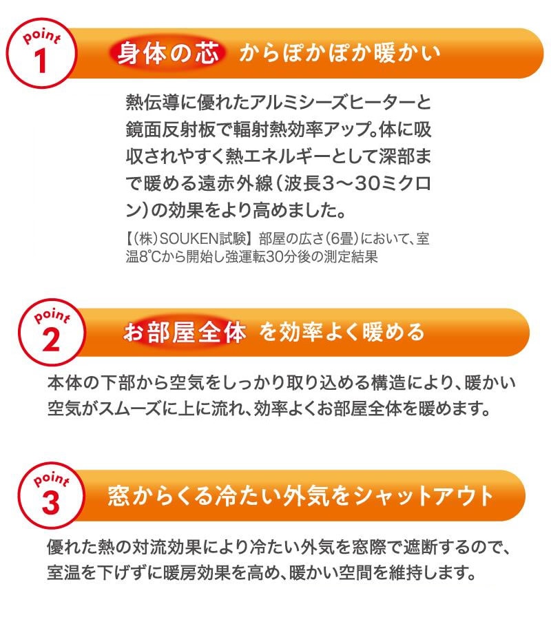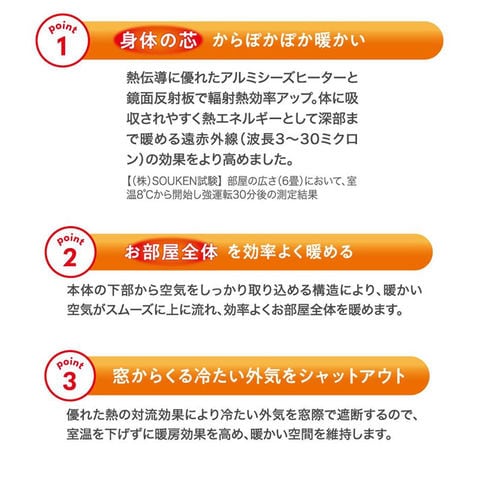 また、対流性能の向上を追求した構造設計で、お部屋全体を効率よく暖めます。