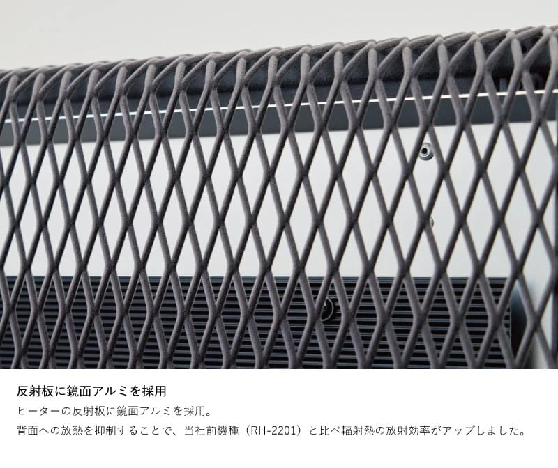 アルミシーズヒーターと鏡面反射板を採用し、輻射熱効率がアップ。