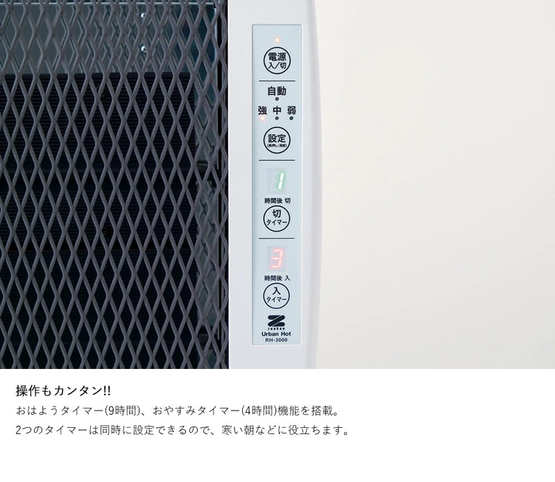 アーバンホットRH-3000 遠赤外線 パネルヒーター 電気ヒーター 日本製 暖房 リビング 省エネ 暖房機 鏡面アルミ 自動運転 節電 フロッキー加工 転倒時安全装置