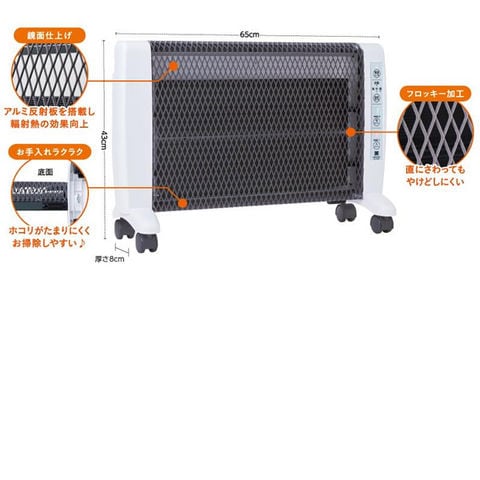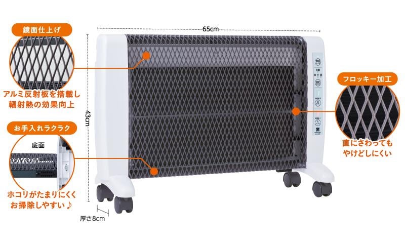 遠赤外線 パネルヒーター 電気ヒーター 日本製 暖房 リビング 省エネ 暖房機 鏡面アルミ 自動運転 節電 フロッキー加工 転倒時安全装置