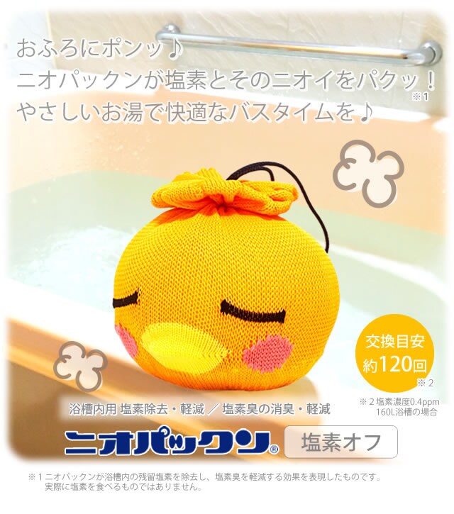 ニオパックン塩素オフ 120回用 アカパックン 塩素除去 塩素臭 消臭 亜硫酸カルシウム 残留塩素 除去 フロートクリア お風呂用シリーズ