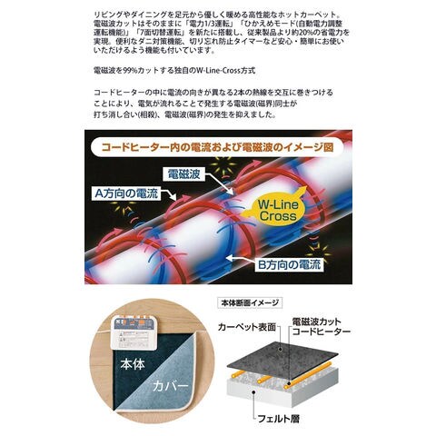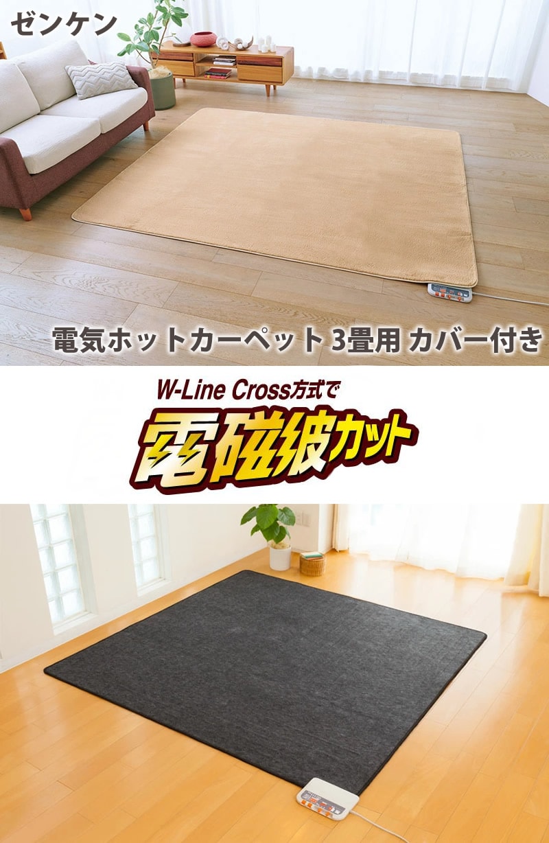 ゼンケン 電気ホットカーペット(カバー付) 3畳タイプ ZC-30SM ホットカーペット 暖房機 電磁波 床暖房 赤ちゃん 安心 パーソナル ホットマット ダニ対策 カーペット 電磁波カット 電磁波 対策 3畳