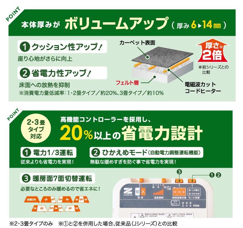 リビングやダイニングを足元から優しく暖める高性能なホットカーペットがリニューアル。