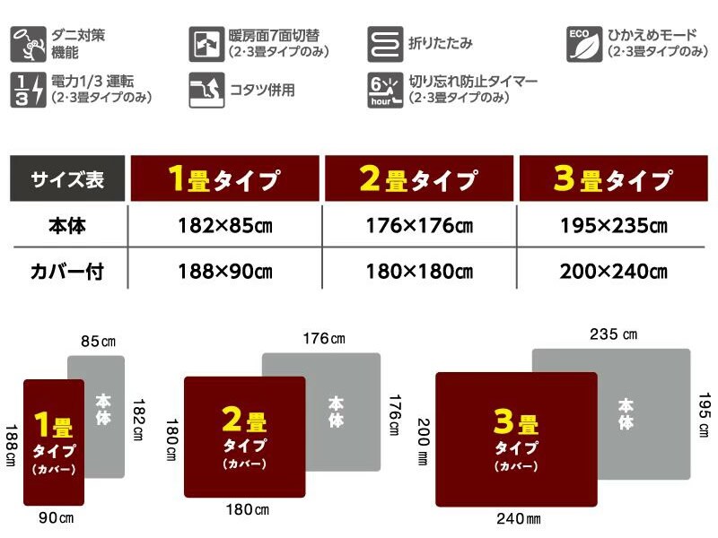 便利なダニ対策機能、切り忘れ防止タイマーなど安心・簡単にお使いいただける機能も付いています。