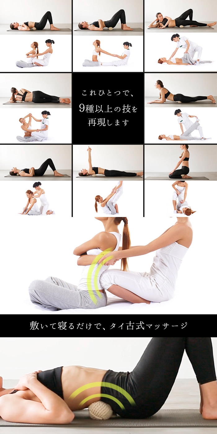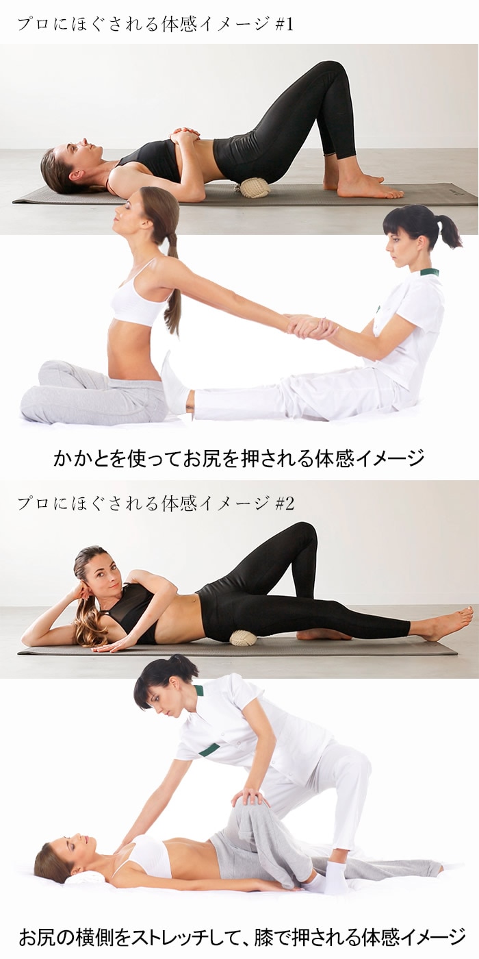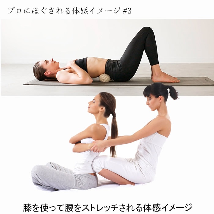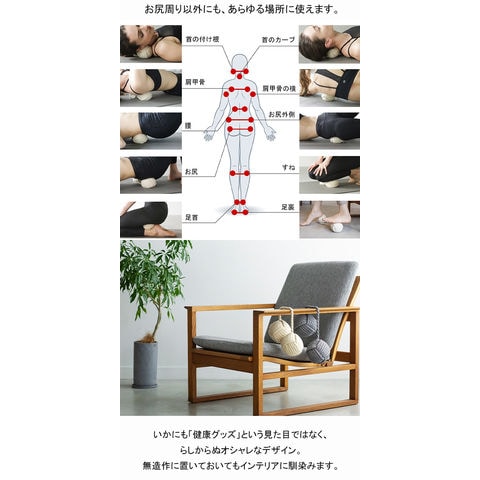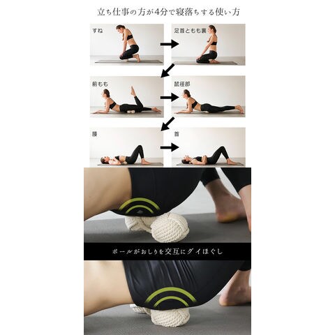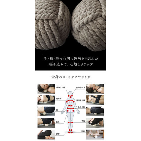 コリが気になる部分に商品を当てて、ゆっくりと自重をかけてください。