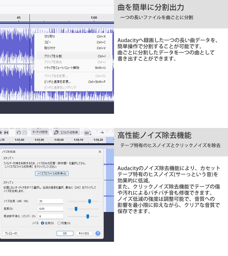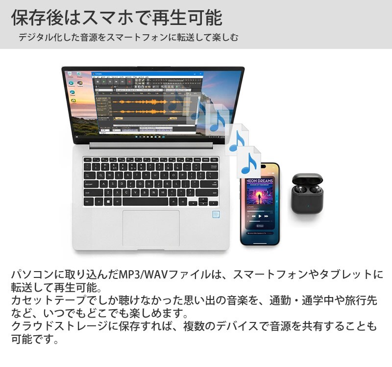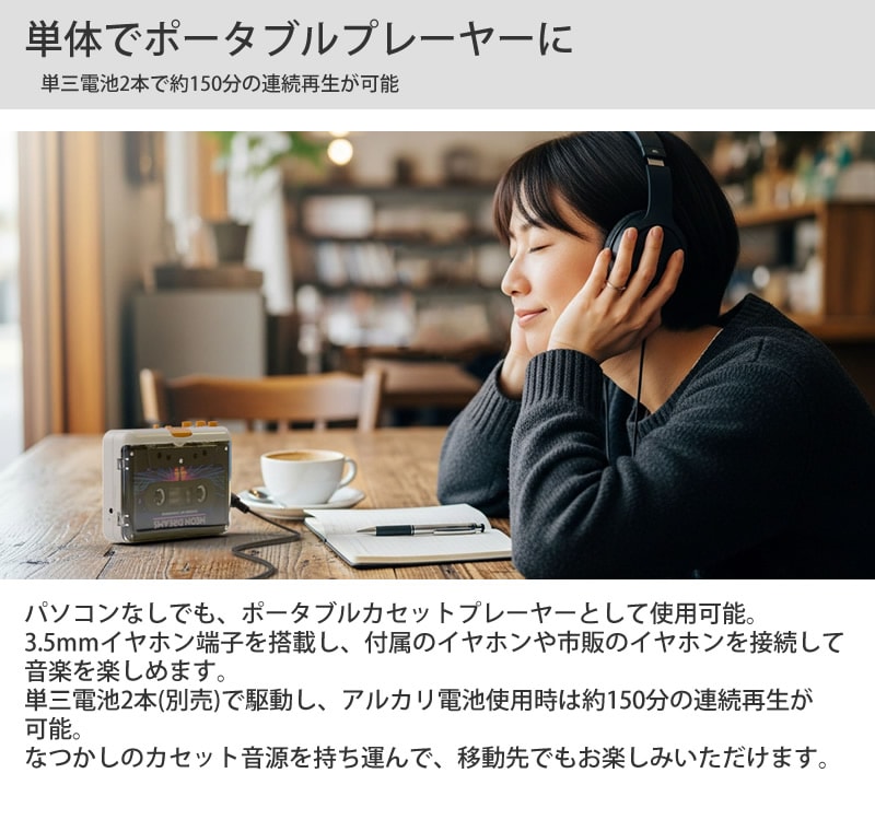 ●本製品はカセットの音源をパソコンに取り込む又はカセットの音楽を聴くポータブルプレーヤーです。取込には対応OSのパソコンにソフトをインストール頂きUSB接 続を行う必要がございます。