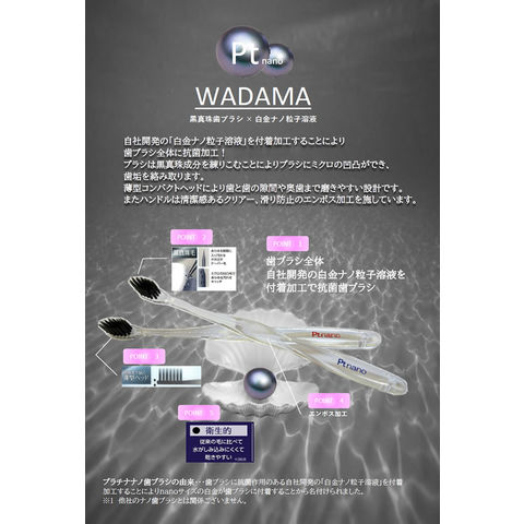 【正規販売店】Ptnano 黒真珠歯ブラシ WADAMA ワダマ プラチナナノ歯ブラシ 歯磨き 日本製 ナノ プラチナ 舌ブラシ 抗菌 防臭 歯 歯茎 マッサージ 歯周病ケア ブラッシング 万毛