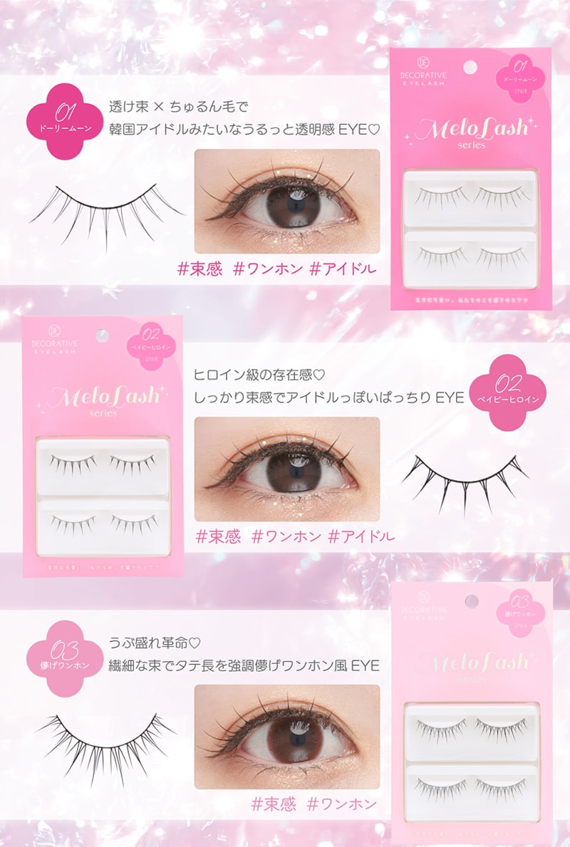 つけまつげ デコラティブアイラッシュ メロラッシュ 2ペア4枚入 つけまつげ つけま 上まつげ ナチュラル 自然 マツエク アイドル 束感 韓国 ワンホン デコラティブ DecorativeEyelash 粧美堂 SHOBIDO